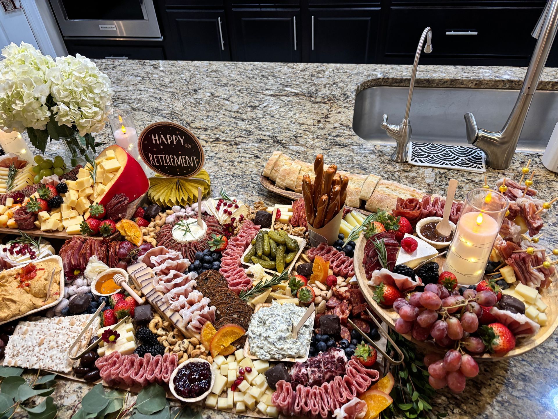 Erin from Thyme Tables created an amazing spread of gourmet treats for my teachers and staff for our staff appreciation brunch. People were speechless when they walked in the room and saw the extraordinary layout Erin designed. I was amazed that we had enough food to serve 90 people!