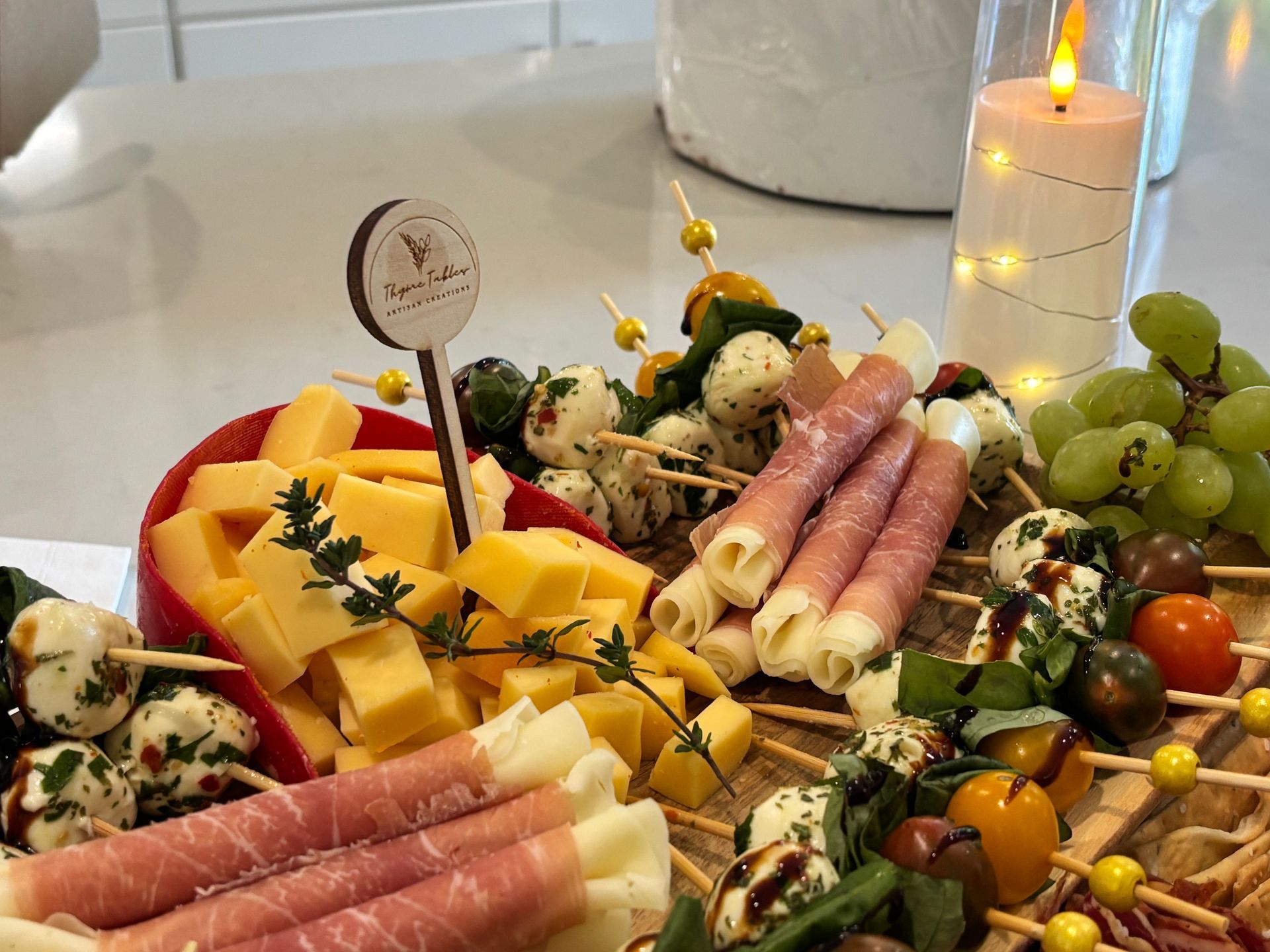 At Thyme Tables, we specialize in crafting visually stunning and delectable charcuterie displays that transcend the ordinary. Each table is a masterpiece, meticulously curated with an assortment of premium cheeses, artisanal meats, fresh fruits, and decadent accompaniments, ensuring a symphony of flavors that captivate the palate. Located in sunny Southwest Florida.